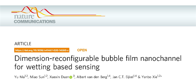 该研究将液体薄膜拓展为一类新的纳米通道,展示了其不仅具有一些传统的固体纳米通道的功能,如离子极化效应等,还能够作为一类新的利用浸润性变化实现生物化学检测的原理。该研究中利用抗原抗体特异性反应产生的浸润性变化,能够在短时间内产生薄膜厚度的变化从而实现快速、高灵敏度的特异性免疫反应检测,最大灵敏度可高出传统固体通道两个数量级。文章链接://www.nature.com/articles/s41467-020-14580-x, DOI: 10.1038/s41467-020-14580-x.