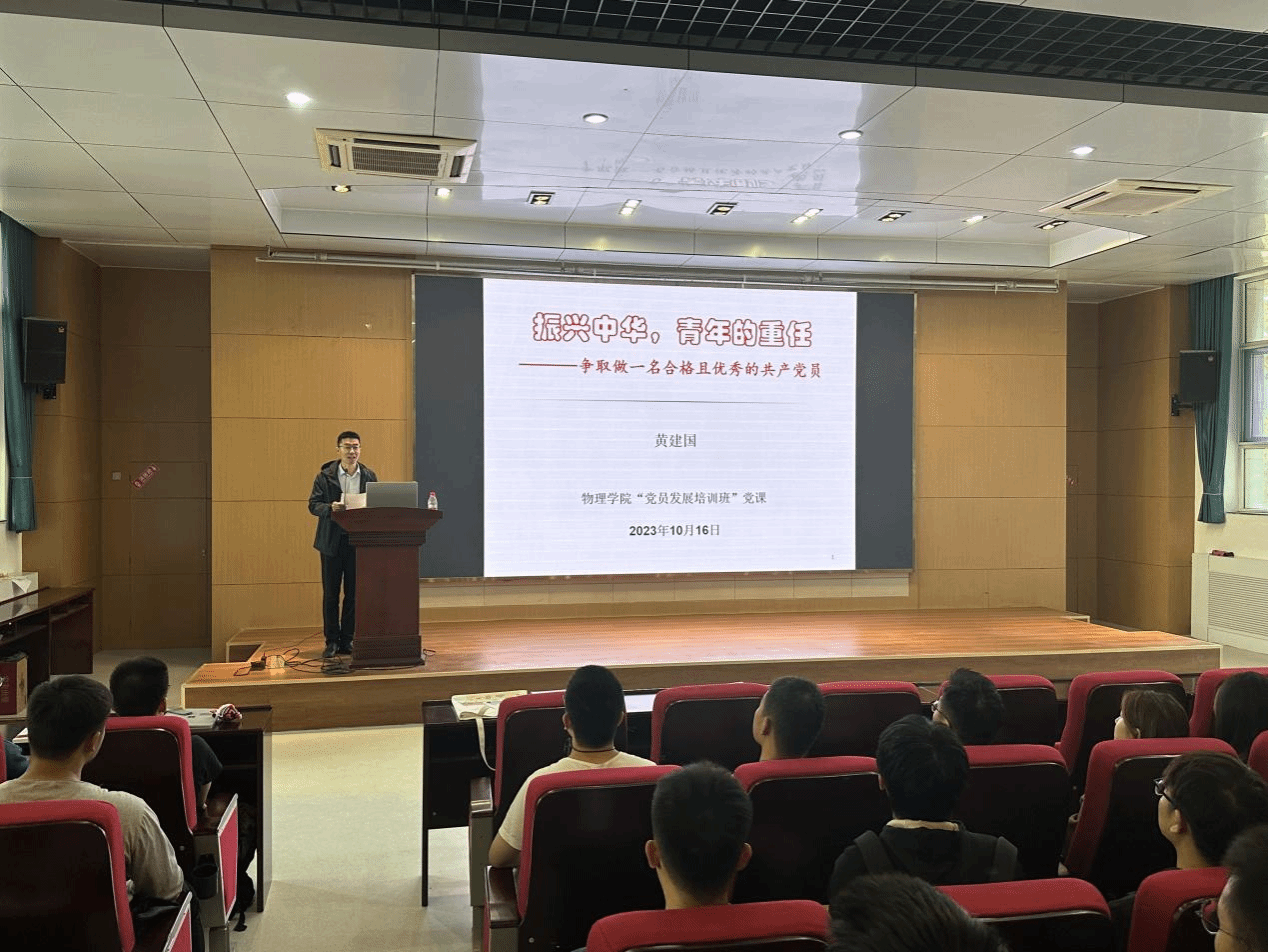 党课伊始,宋坤代表学院感谢黄建国教授为广大学员进行授课,并简要介绍了黄建国教授的基本情况,同时,希望学员们提高思想认识,遵守课堂纪律,认真听讲、做好记录,以此为契机,加深理解物理基础学科与航海、国防之间的联系,为振兴中华贡献青年力量。