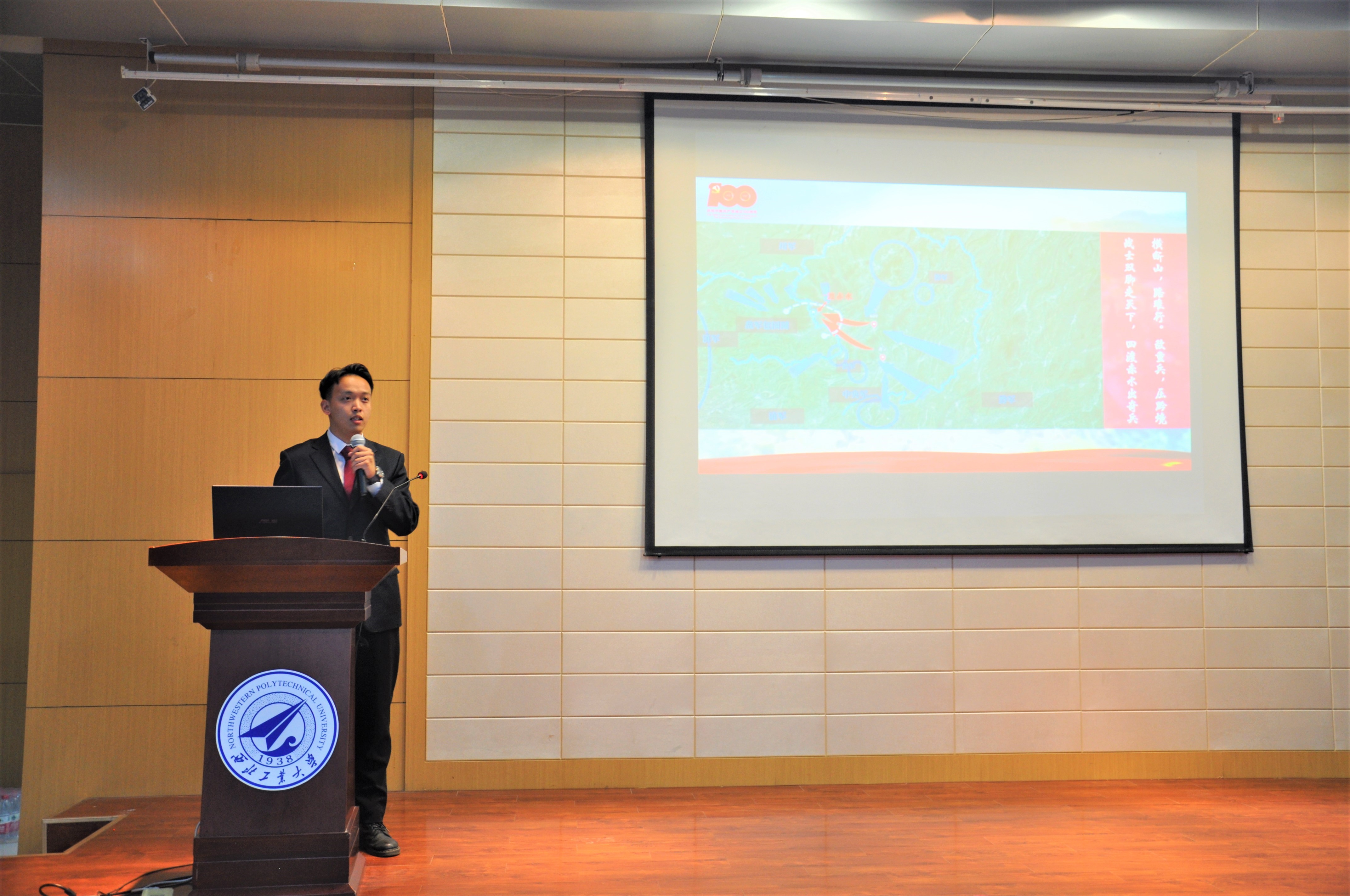 在肖鼎新作开场致词后,各位参赛选手在精心准备的PPT与动人的音乐的伴奏下为我们讲述了革命英烈们的光辉事迹。从嘉兴南湖的红船精神到抗美援朝的爱国精神,从四渡赤水的万里长征到凤凰城的浴火重生,从为人民服务的张思德同志到时代楷模张桂梅老师。每位选手都以饱满的热情,为我们讲述了建党百年以来千千万万共产党人艰苦奋斗、筚路蓝缕的奋斗征程,同学们声情并茂的讲述向我们展现了他们内心深处对党和国家最真挚的感情。