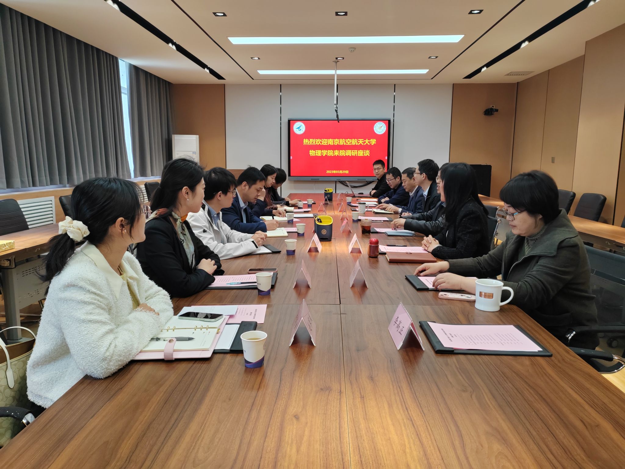 会上,晁小荣代表学院对南京航空航天大学物理学院的到访表示热烈欢迎。晁小荣、陈修文分别介绍了双方参会人员。