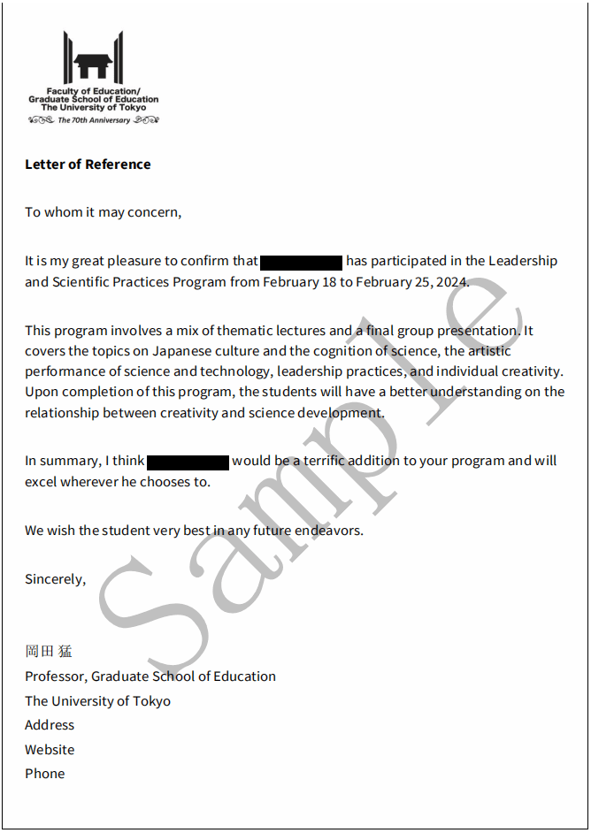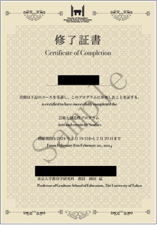 完成本课程并通过结业的学员,将获得由东京大学主办部门官方颁发的结业证书、推荐信,优胜小组成员还将获得优秀学员证明。
