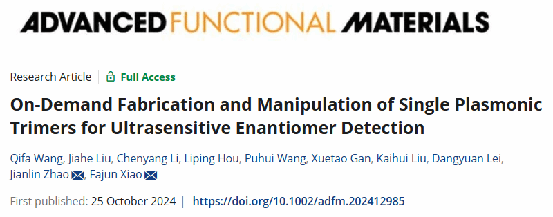 肖发俊教授、赵建林教授团队联合香港城市大学雷党愿教授、北京大学刘开辉教授在纳米科技领域顶级期刊《Advanced Functional Materials》发表了题为“On-Demand Fabrication and Manipulation of Single Plasmonic Trimers for Ultrasensitive Enantiomer Detection”的研究论文。韩国成人电影