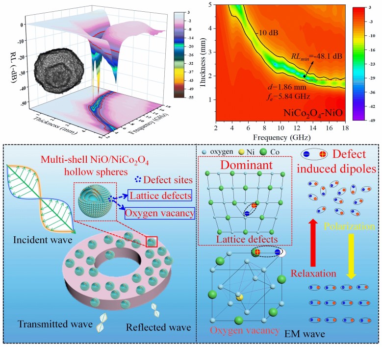 研究成果以“Defect Induced Polarization Loss in Multi-Shelled Spinel Hollow Spheres for Electromagnetic Wave Absorption Application”为题,在国际知名期刊《Advanced Science》上发表。论文第一作者为该院博士研究生秦明,通讯作者为吴宏景副教授。论文链接://onlinelibrary.wiley.com/doi/10.1002/advs.202004640,DOI: 10.1002/advs.202004640。