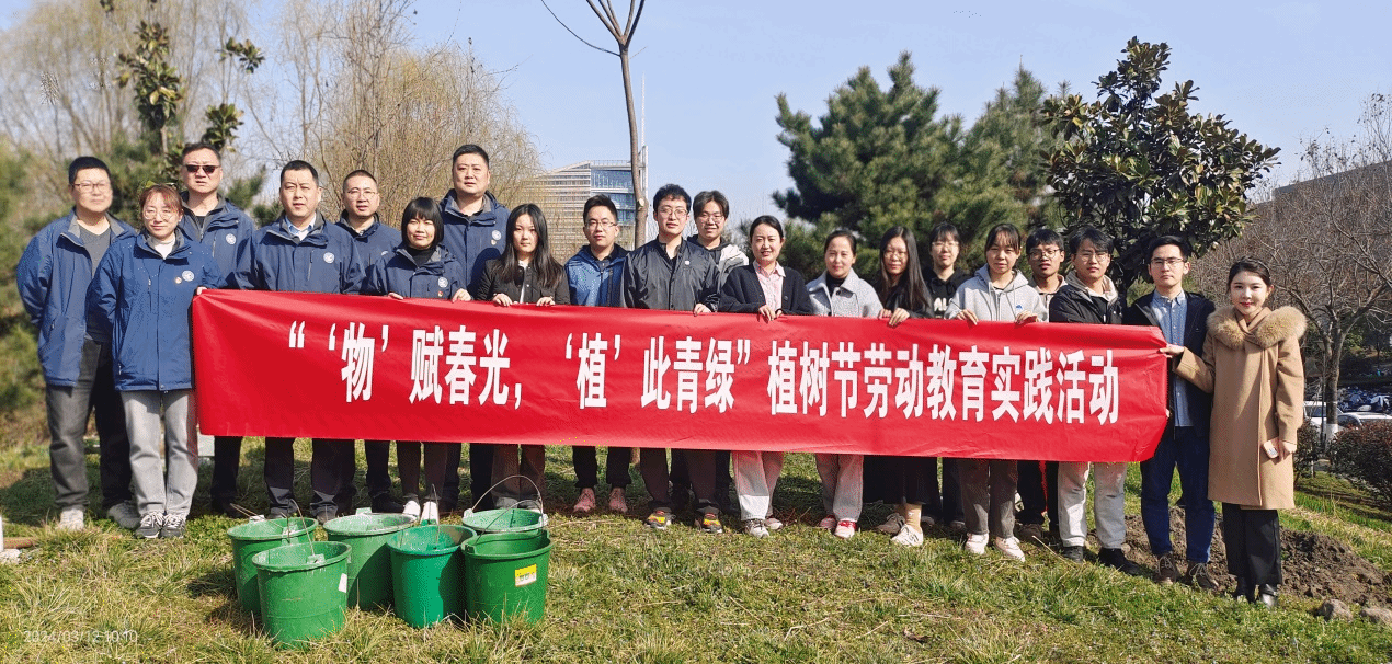春风拂柳校园暖,植树添绿正当时。为全面贯彻落实习近平生态文明思想,深入开展生态育人、劳动育人主题教育。在西安市第十一个秦岭生态环境保护宣传周来临之际,3月12日上午,物理科学与技术学院党委与后勤集团物业服务中心党支部联合开展“‘物’赋春光 、‘植’此青绿”植树节劳动教育实践活动。师生们在长安校区理学院楼外参加植树护绿活动,用实际行动助力绿化建设,充分发挥党员先锋模范带头作用。后勤集团物业服务中心主任、物业服务中心党支部书记及支部党员;物理科学与技术学院部分党支部书记、党支部支委及部分党员参加本次活动。