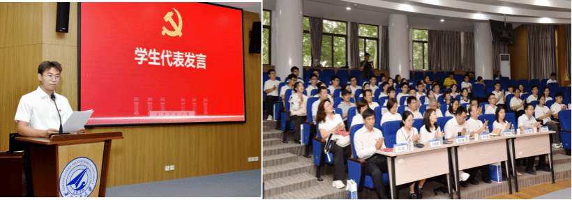 随后,西北工业大学物理科学与技术学院2021级应用物理强基班班长范振坤作为学生代表进行发言,他表示,作为新时代大学生,我们要肩负起时代赋予我们的责任,要以革命先辈为榜样,将个人梦想与国家发展紧密相连,传承革命先辈的优秀品质,将延安精神转化为学习动力,在物理学的探索中勇攀科学高峰。