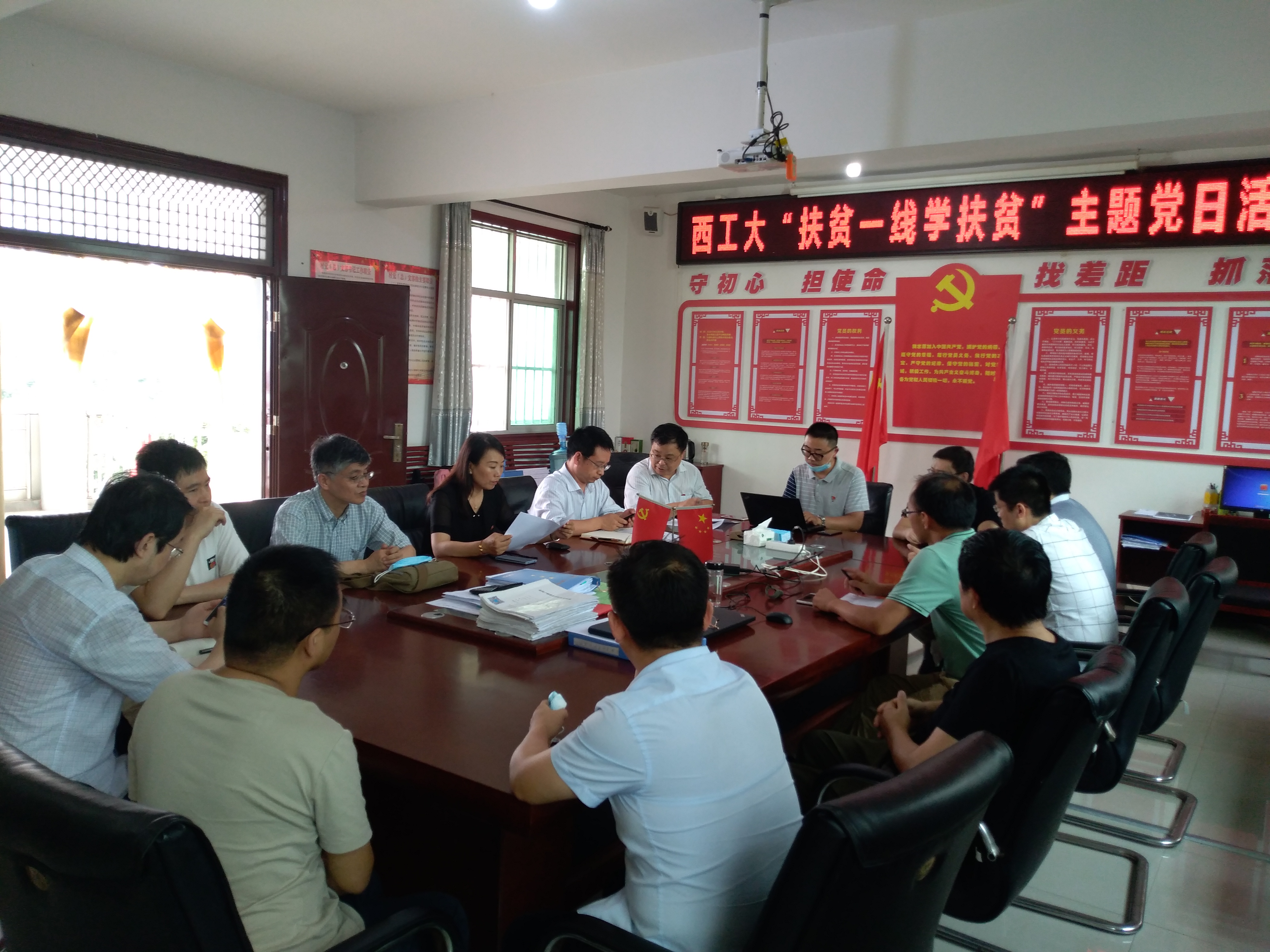 2020年是决胜全面建成小康社会、决战脱贫攻坚的收官之年,是实现第一个百年奋斗目标的关键之年。为深入贯彻习近平总书记来陕考察重要讲话精神和习近平总书记关于扶贫工作的重要论述,贯彻落实党中央脱贫攻坚决策部署,7月3日,数学与统计学院、物理科学与技术学院、化学与化工学院党委领导班子带领部分教师党支部书记、院办党员十余人赴鄠邑区余下街道灵山寺村开展主题为“扶贫一线学扶贫”的主题党日活动。西安市科技局派驻鄠邑区余下街道灵山寺村驻村工作队队长仇寅虎、西安市优秀驻村第一书记关盛元及相关工作人员参加会议。会议由物理学院副书记王洲航书记主持。