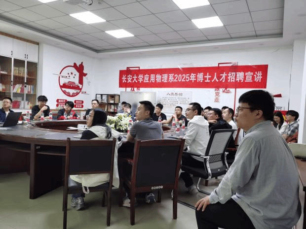 4月25日上午,物理科学与技术学院2019届院友、长安大学应用物理系主任沈浩带队重返物理科学与技术学院,开展博士人才招聘宣讲活动,吸引了学院众多博士生参加。