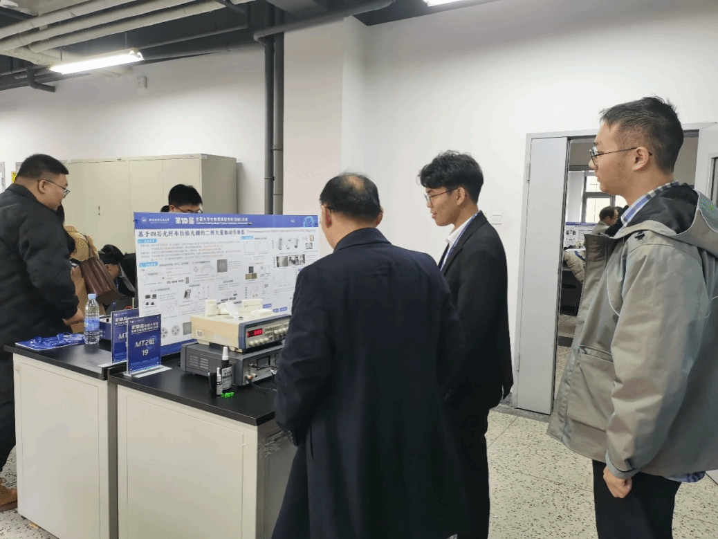 此次一等奖获奖作品——“基于四芯光纤布拉格光栅的二维矢量振动传感器”是利用飞秒激光在四芯光纤中选芯制备了四个光纤布拉格光栅,并采用3D打印方式设计制作了振动传感器的封装结构。利用四个光纤布拉格光栅具有不同的弯曲响应特性的特点,实现了二维矢量振动传感。该传感器结构简单,方便制作,性能稳定,具有很高的实验教学价值,同时在实际工程领域也具有重要的应用潜力。