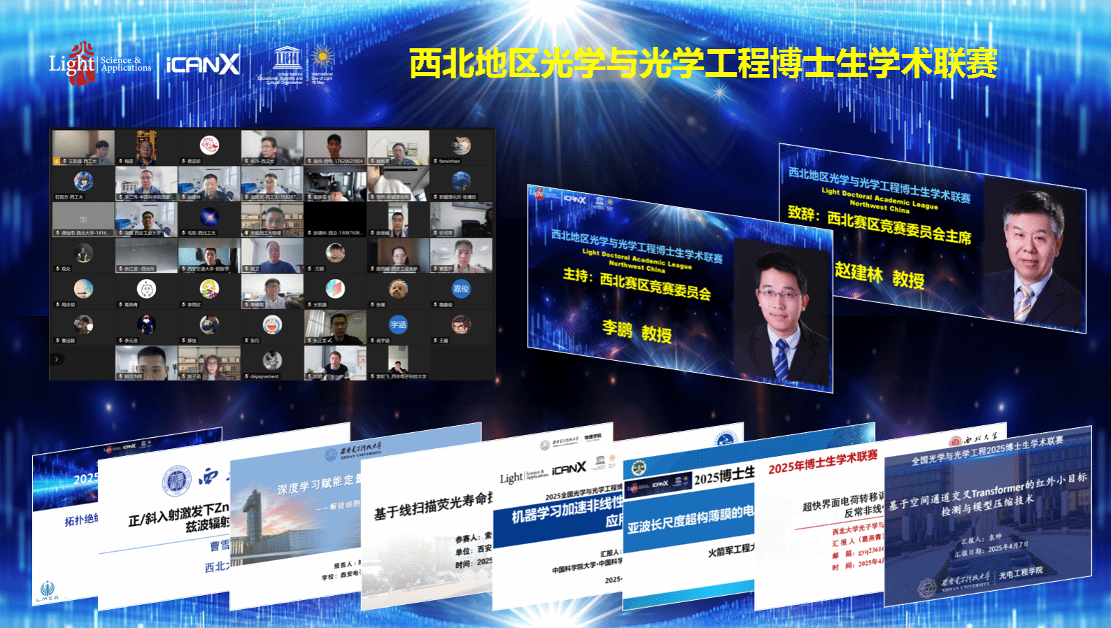 4月7日,由Light学术出版中心、iCAN和联合国教科文组织“国际光日”组织委员会联合主办,西北工业大学联合西安电子科技大学、中国科学院西安光机所、陕西省光学学会、陕西省物理学会承办的2025全国光学与光学工程博士生学术联赛西北赛区比赛落下帷幕,这是西北地区第五次组织光学和光学工程领域博士生学术竞赛。本届竞赛有来自火箭军工程大学、空军工程大学、西安电子科技大学、西安工业大学、西安交通大学、西安理工大学、西北大学、西北工业大学、中国科学院国家授时中心、中国科学院新疆理化技术研究所的35名学生报名参赛。通过组委会材料初审,最后25名博士研究生入围本次区赛并参加比赛。