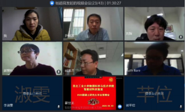 2020年3月3日,西北工业大学物理科学与技术学院首组五位硕士学位论文答辩通过线上视频方式顺利开展。