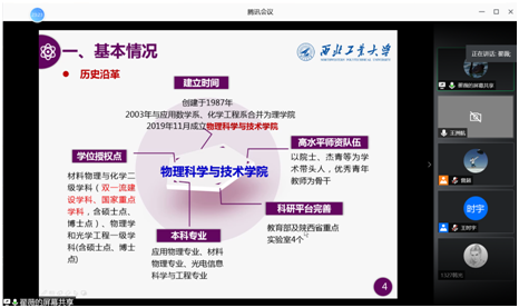 接下来,物理科学与技术学院党委副书记王洲航老师进行了学院思政工作的简要介绍,概述了学院党团建设、思想引领、学生参与、实践育人、志愿服务等方面的情况。同时王书记也表示希望能加强与学生家长的沟通与交流,让学生家长能及时获悉学生在大学里的学习与生活情况。