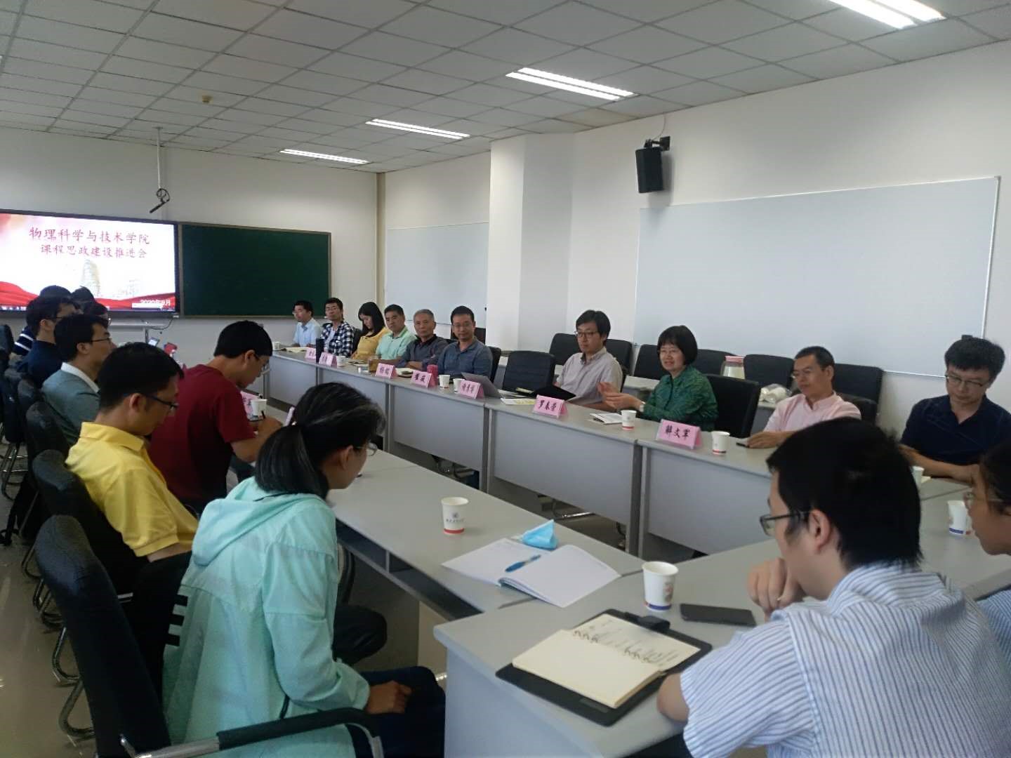 为全面贯彻落实教育部《高等学校课程思政建设指导纲要》和汪校长在新学期干部大会讲话精神,全面推进课程思政建设,9月18日上午,物理学院举行课程思政建设推进大会。会议邀请了马克思主义学院书记吴闻川和陈诚平、折军两位教师代表,特别邀请“陕西省高校课程思政教学能手”、西北工业大学“三育人”先进个人数学与统计学院潘璐璐老师为大家分享她的课程思政心得。学院领导杨铭、翟薇、谢彦博,省教学名师罗春荣,公共课负责人、专业负责人、教师代表、辅导员代表和近年新入职教师30余人参加会议。