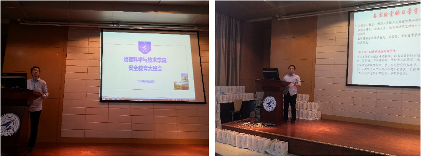 2020年9月27日-30日,为进一步增强学生的安全防范意识,确保国庆节、中秋节期间学生的人身和财产安全,物理科学与技术学院对各年级本科生和研究生分批次开展了假期安全教育。27日下午,物理科学与技术学院党委副书记王洲航老师为2017级本科生解析了学校《关于做好国庆节、中秋节假期学生疫情防控及安全管理工作的通知》,强调了“非必要不出校”、“尽量减少出校”原则,以及有特殊情况需要离开西安市(11 区 2 县)的请销假手续等等。28日早上,2020级本科生安全教育工作由辅导员曾超老师主持,强调假期不仅要重视疫情防护也要注意出行安全,并分发了《西北工业大学学生安全教育和管理协议书》,要求学生和家长悉知并签字确认,帮助新生及家长们进一步了解我校安全规章制度。29日下午,全体研究生安全教育大会在王洲航老师的主持下如期进行,毛东副院长为全院研究生作了题为实验室科研安全的专题讲座,院长助理肖鼎新老师布置了假期有关安全工作。29日晚,2018级和2019级本科生安全教育大会在理学院学术报告厅举行,王洲航老师主持会议,辅导员曾超老师和兼职辅导员王时宇同学参会。 会议最后,学院为同学们精心准备的中秋礼物使整个会议室都洋溢着喜迎双节的快乐气息。