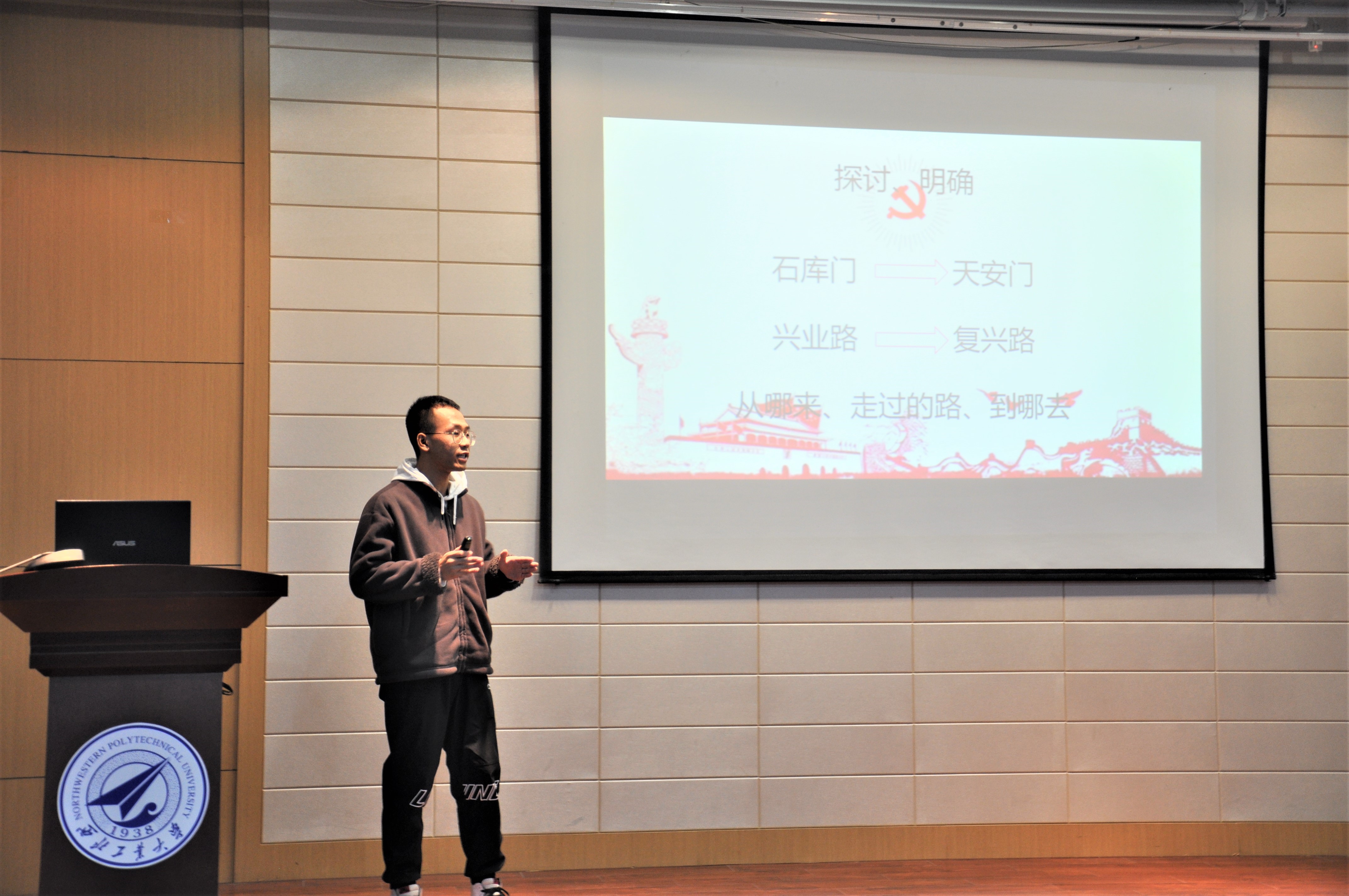 在肖鼎新作开场致词后,各位参赛选手在精心准备的PPT与动人的音乐的伴奏下为我们讲述了革命英烈们的光辉事迹。从嘉兴南湖的红船精神到抗美援朝的爱国精神,从四渡赤水的万里长征到凤凰城的浴火重生,从为人民服务的张思德同志到时代楷模张桂梅老师。每位选手都以饱满的热情,为我们讲述了建党百年以来千千万万共产党人艰苦奋斗、筚路蓝缕的奋斗征程,同学们声情并茂的讲述向我们展现了他们内心深处对党和国家最真挚的感情。