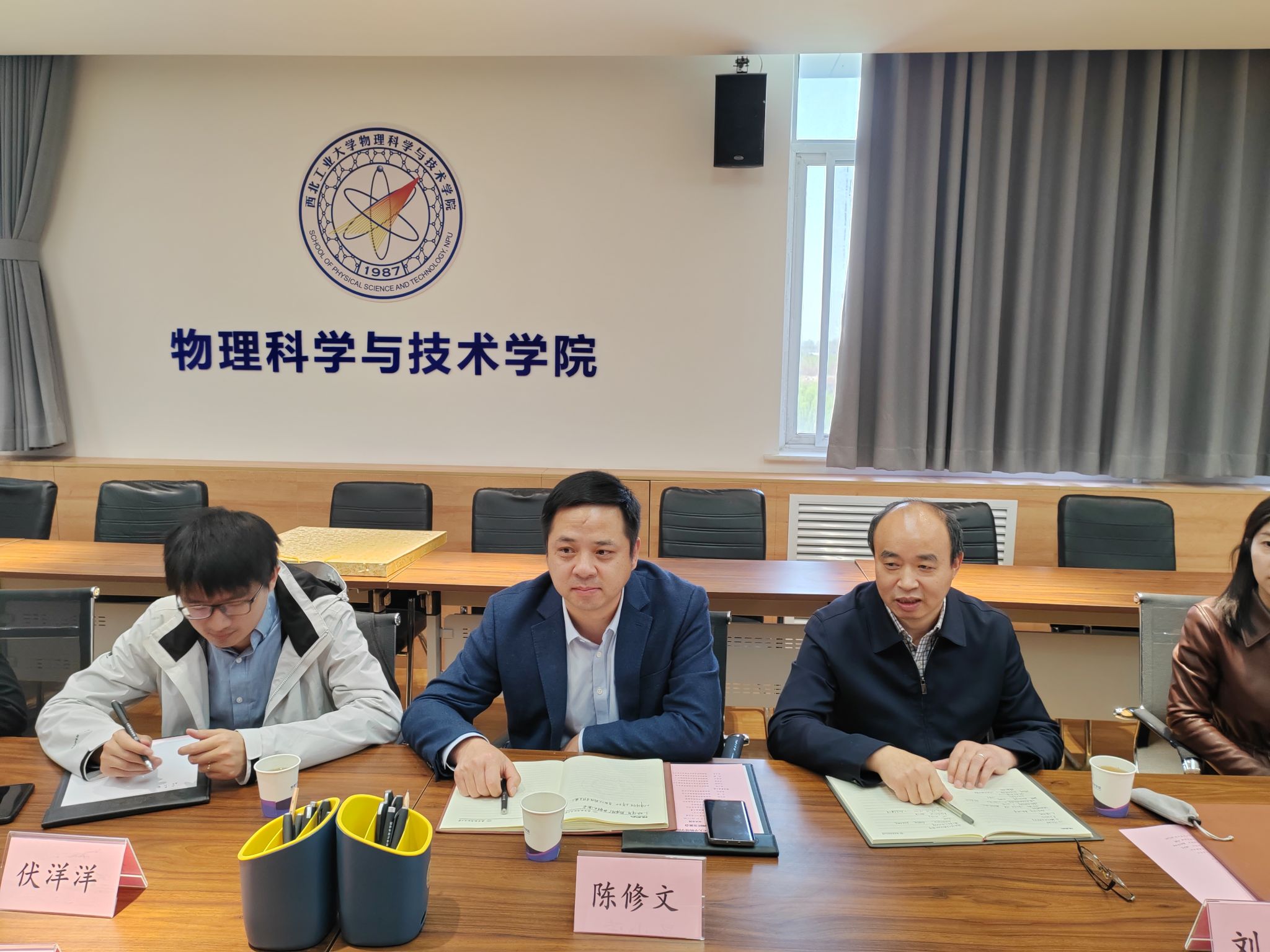3月29日上午,南京航空航天大学物理学院党委书记陈修文、院长刘友文、党委副书记欧珊等一行7人来我院调研交流。物理科学与技术学院院长翟薇、党委书记晁小荣、党委副书记王洲航、副院长尹剑波、侯泉文、院长助理闫娜等参加会议,会议由晁小荣主持。