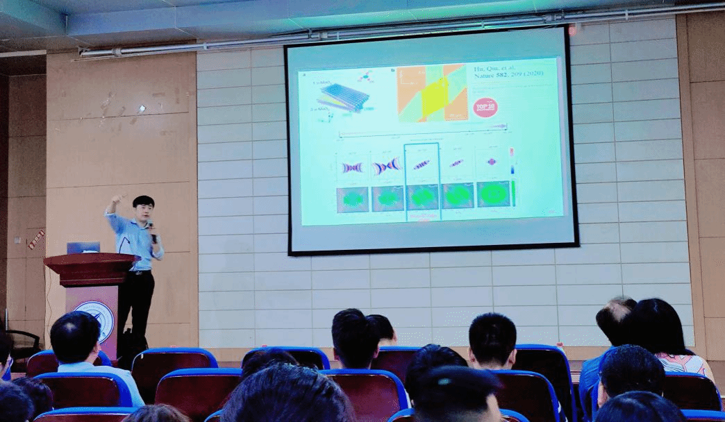 在报告中,仇成伟教授由“1+1>2”的趣味观点出发,回顾了等离激元和电介质超表面近年来的一些研究成果,并着重介绍单层过渡金属硫化物和层状二维材料如何与经典超表面配合使用,达到操控和产生新型光场的目的,例如通过两者的协同配合实现零暗电流和双极半金属光电探测器、单原子层厚度的超透镜等。仇成伟教授的报告紧扣光学领域前沿问题,从科学前沿热点、资源利用发展的角度,结合自己多年来的科学研究成果,以详实的实验数据和深入的分析,阐述了他对界面工程、光电器件、光与物质相互作用等问题的理解和认识,并对未来的发展趋势作出了展望。