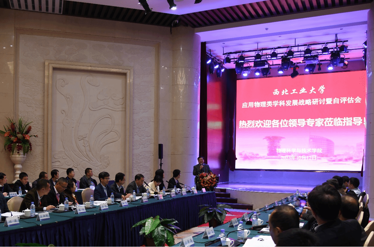 喜迎西北工业大学建校85周年校庆之际,2023年10月12日,西北工业大学应用物理类学科发展战略研讨暨自评估评审会在大唐西市酒店锦绣华庭会议室顺利召开。专家评审组由国务院学科评议组成员以及省内外知名专家组成,物理学学科评审专家包括东北师范大学刘益春院士、吉林大学马琰铭教授、大连理工大学赵纪军教授、山东大学司宗国教授、北京航空航天大学吕广宏教授、哈尔滨工业大学田浩教授、武汉大学肖湘衡教授、东南大学董帅教授、苏州大学李亮教授;光学工程学科评审专家包括深圳大学袁小聪教授、北京理工大学董毅教授、南开大学刘伟伟教授、西安电子科技大学邵晓鹏教授、西北大学白晋涛教授、西安理工大学施卫教授、中科院光机所阮萍教授。西北工业大学党委常务副书记程基伟、魏炳波院士、学科建设办公室部门相关负责人出席会议,物理科学与技术学院班子成员、学院教师代表及学生代表等参加了本次会议。