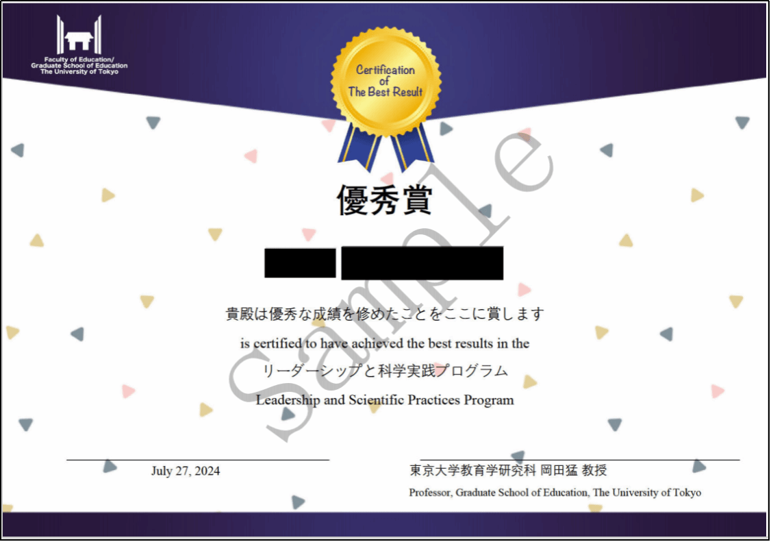 完成本课程并通过结业的学员,将获得由东京大学主办部门官方颁发的结业证书、推荐信,优胜小组成员还将获得优秀学员证明。