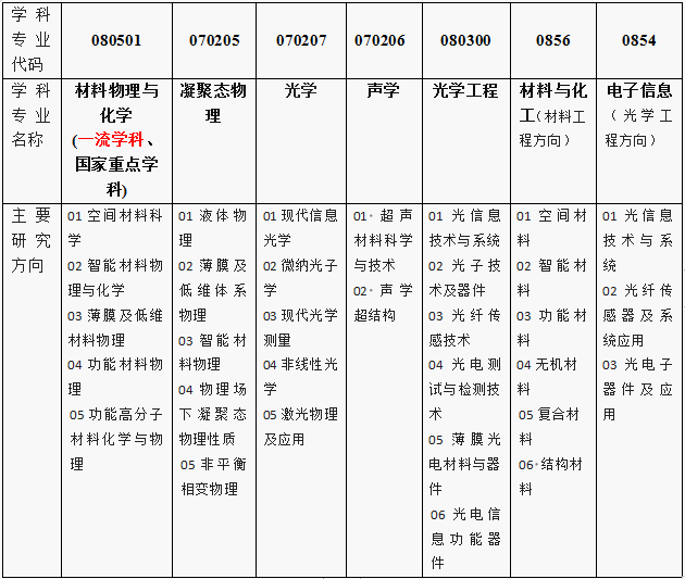 学院围绕材料物理与化学、物理学、光学工程等领域开展基础和应用基础研究,着力打造特色鲜明、具有国际影响力的强大学科群。学院设有材料物理、应用物理学、光电信息科学与工程、应用物理学强基计划四个本科专业,其中材料物理和光电信息科学与工程本科专业获批国家级“一流本科专业”建设点,应用物理学专业获批为陕西省“一流本科专业”建设点;材料物理与化学二级学科博/硕士点、物理学和光学工程两个一级学科博/硕士点,材料与化工和电子信息两个专业型硕士点,以及材料科学与工程、物理学、光学工程三个博士后流动站。材料物理与化学为国家“一流”建设学科和国家重点学科,光学工程为陕西省重点建设学科,物理学进入ESI全球学科排名前1%。