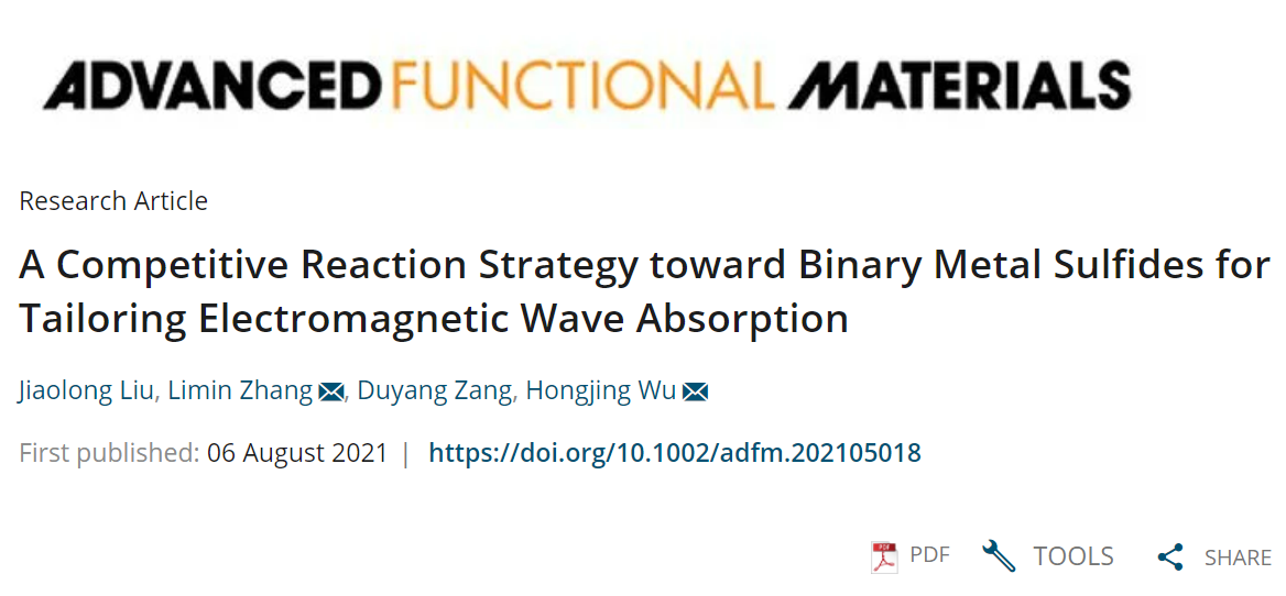 近日,我校物理科学与技术学院青年教师吴宏景副教授在电磁波吸收领域取得重要进展。相关研究成果以“A competitive reaction strategy toward binary metal sulfides for tailoring electromagnetic wave absorption”为题在线发表于国际知名期刊《Advanced Functional Materials》。论文第一作者为该院博士研究生刘骄龙,共同作者为该院臧渡洋教授,张利民副教授和吴宏景副教授为论文共同通讯作者。论文网址:。